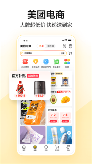 美团免费版能够让你在手机上轻松的享受到超多的美食服务,不管是美食还是水果蔬菜都可以在这里找到相应的种类供你购买。同时还有超多特价商品为你提供哦!