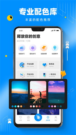 熊猫绘画免费版本质性强大的手机专业绘图软件,这是一款专为各位小伙伴们所打造的绘画创作平台软件应用,该软件页面简洁,内含丰富的功能服务和海量丰富优质的绘画模板素材可供用户任意选择使用。软件整体界面设计简约清新,内容丰富多样,拥有着多种不同类型的画笔及其各种各样的画布工具可以帮助用户在不同的绘画场景中进行自由切换操作体验,让你随时随地都可以在这里尽情享受绘制乐趣。软件介绍