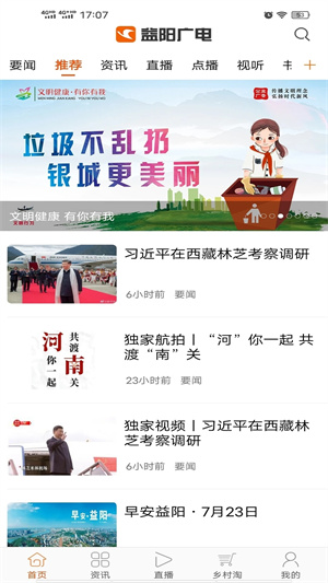 益阳广电app是专为广大益阳市人民打造的一款新闻资讯服务类软件,该应用内有着海量的益阳本土新闻以及国内最新时事内容可供用户浏览。并且在软件内还有着各种便捷实用的手机功能等你来探索体验!