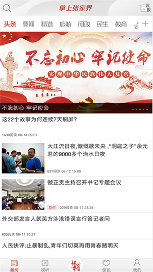 “智慧张家界”客户端是张家界市委宣传部主管,承办全市报刊杂志的全媒体矩阵平台;是张家市主流媒体的传播渠道;是张家界主流舆论阵地,是对外宣传的窗口;还是与社会公众直接交流互动的桥梁、纽带、沟通的媒介。以市民为中心,以***为核心,以民生为导向的“互联网+新闻”,以“智慧张家界”作为产品主旨;