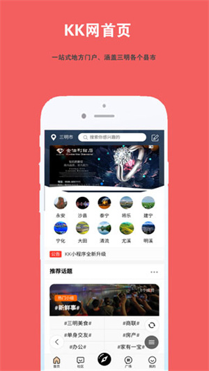 三明kk网app是国内知名的手机新闻资讯平台,拥有海量的本地生活服务信息资源和内容。为用户提供丰富的热点话题讨论等功能体验!