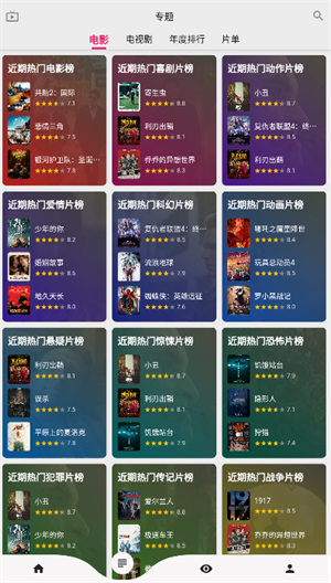 3、超多不同的榜单让你轻松找到喜欢的电影大片节目了,而且都是正版片源提供的很不错呢。