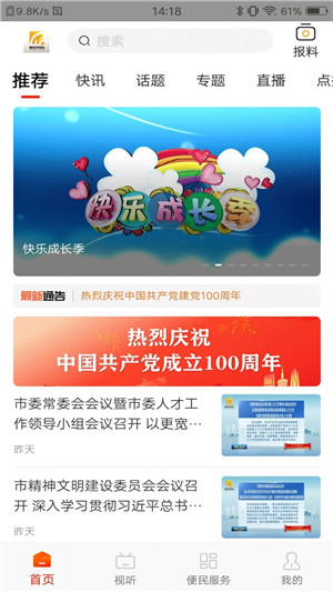 肇庆市手机台app是款相当方便的手机新闻阅读软件,开启之后用户们就能快速找到我们需要的内容和选择进行观看。在这里超多内容让我们可以轻松获取自己感兴趣的信息并完成自己的生活使用等操作也是很方便适合我们随时随地在手机上看各种资讯信息