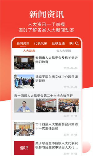 安阳人大app是安阳市人民便利履职工作与市政协委员打造的便民服务平台,拥有丰富的生活资讯信息内容可以了解查看和学习。