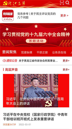 黑龙江14个市县级以上党员登录APP即可查看最新的党建资讯。