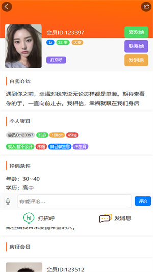 根据用户的喜好及需求精准推荐合适的会员群体,提高交友成功率。
