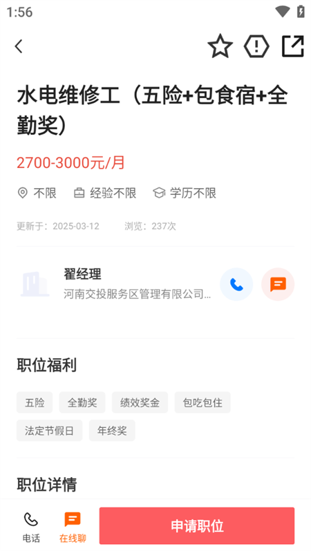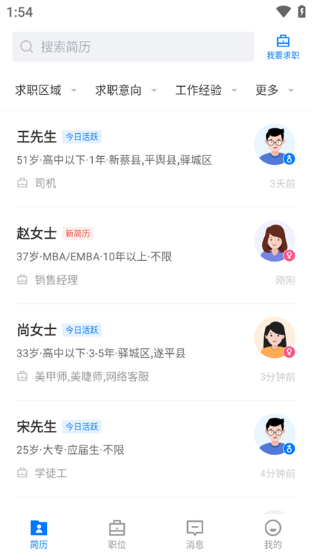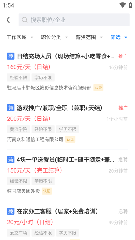 驻马店直聘网app顾名思义是一个为本地居民和企业招聘求职的软件,在这里有非常多的工作等你来选择哦,平台里面的所有岗位都经过审核真实有效,保证了职位信息的安全性和可靠性,同时还有很多兼职可以赚钱哦,让你轻松找到合适自己的工作机会,欢迎有需要的朋友下载使用!