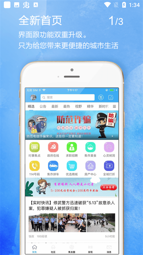 大焦作app是一个专为本地市民提供的一款生活服务平台,在这里汇集了焦作当地的各种新闻资讯和便捷的生活功能。无论你身处何地,只需打开手机即可轻松获取最新的资讯内容、政务信息以及其他实用工具和服务!通过这个平台,你可以随时随地的了解焦作发生的大小事,无论是政治、经济还是文化等方面的内容,都能第一时间了解到,让你时刻关注身边的动态变化。