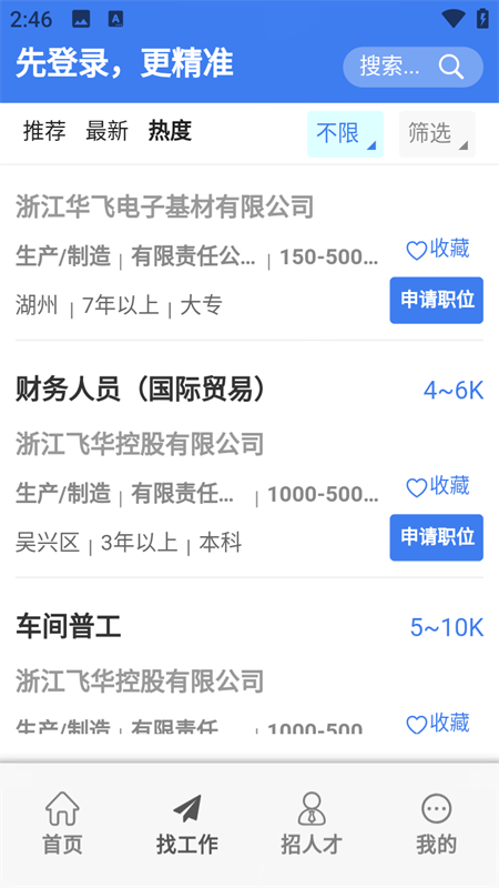 放心来湖州app是浙江飞灵软件有限公司专为湖州市的居民朋友们提供的一款求职招聘平台,在这里有大量的招聘信息可以供用户们的进行选择和浏览。其中在工作内容上就十分详细了,例如工资计算、薪资发放等等服务方面都非常丰富且全面呢,并且为了让各位用户更好的找到自己满意的工作岗位哦,软件提供了最方便快捷的简历投递功能哟,帮助我们轻松快速地将自己的简历呈现到招聘企业面前哦。