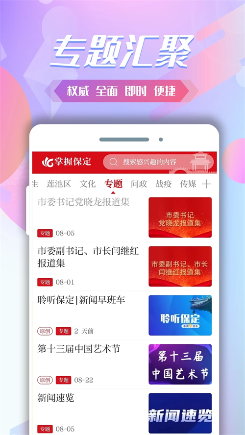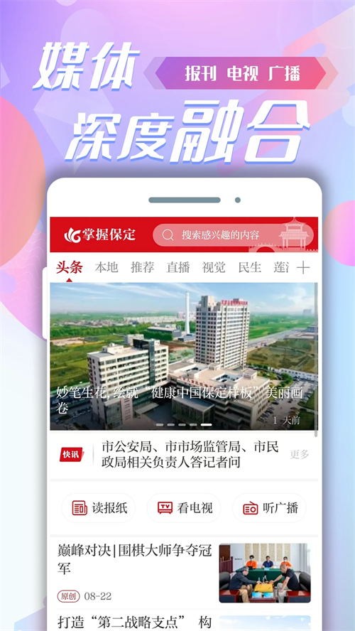 掌握保定app是一个专门为保定地区的用户所打造的移动互联网生活客户端;该系统主要是以报纸形式展现各种新闻、民生消息以及本地最新政策解读等诸多功能于一体,