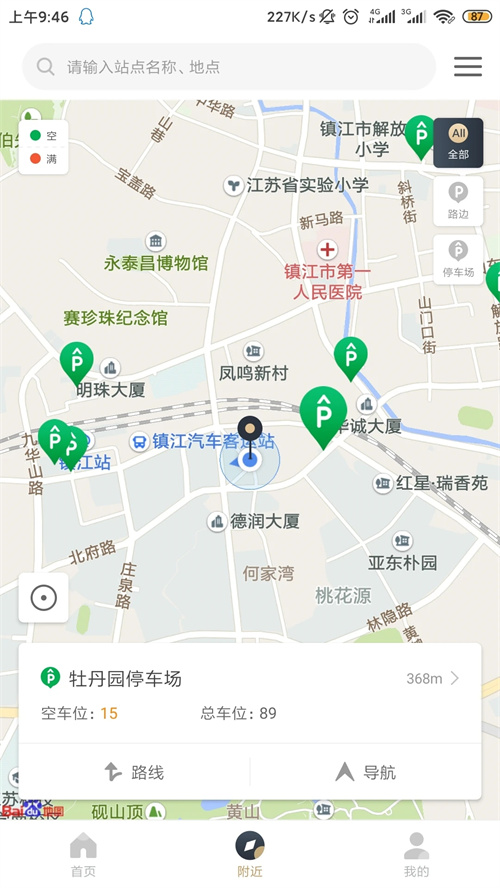 1、下载安装镇江市智慧停车app后打开,点击登录注册新账号即可直接进入主页面查看自己所在的位置定位哟;