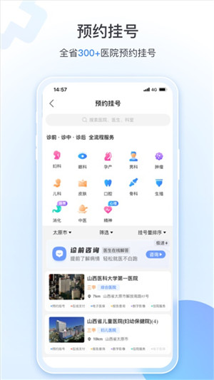 【智能导诊】:根据症状推荐专业医生,足不出户也能了解科室情况。