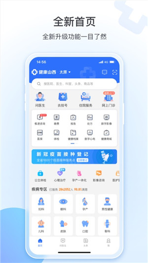 健康山西微服务端app最新版本是专为河南省卫生和计划生育委员会打造的医疗服务的软件,这款软件提供了丰富的功能和服务。包括预约挂号、报告查询等;用户可以通过手机随时随地获取医院最新动态信息!