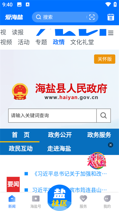 爱海盐县传媒中心专为本地市民打造的本地服务软件,在爱海咸县传媒中心专为用户带来最优质的服务体验和生活信息发布功能。让大家在这里轻松了解本地新闻资讯、政务咨询等等内容,