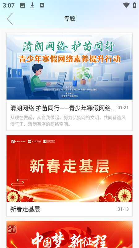无线淮安app是淮安市广电传媒集团有限公司开发的广视讯客户端,用户可以使用这款软件随时随地了解淮安市的最新动态资讯内容,同时提供了电视节目直播功能。为用户们带来便捷的服务体验!