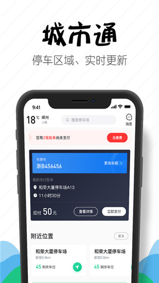 1、停车缴费:通过APP进行车场预约及支付后可实现在线自助停车场查询与预存费用办理。