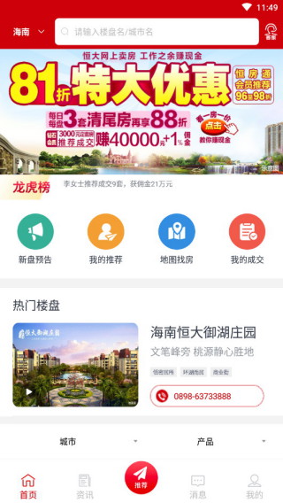 恒房通app最新版是一个由恒大集团开发的地产销售平台,软件拥有恒屋通、新客网等诸多房源信息可以查看和选择。恒居通是一款专注于房地产交易服务的手机应用。恒居通APP汇集了恒山市的所有房地产市场资讯与服务功能,让您可以随时随地了解最新的房地产市场动态。恒住通APP致力于帮助客户实现一站式房产买卖体验,为用户提供便捷的一键查询以及智能匹配推荐系统,并支持地图找房的功能!