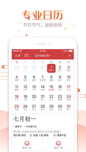 万年历简易版适合在不同人群使用,用户下载app之后就可以在线查询日历、节气和天气等信息。丰富的功能可以帮助大家轻松管理日程安排以及了解重要事项等等!欢迎有需要的用户下载农吉日黄道宜忌看看吧。