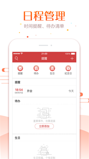 支持多次、周期性重复提醒,添加涂鸦、录音等信息;