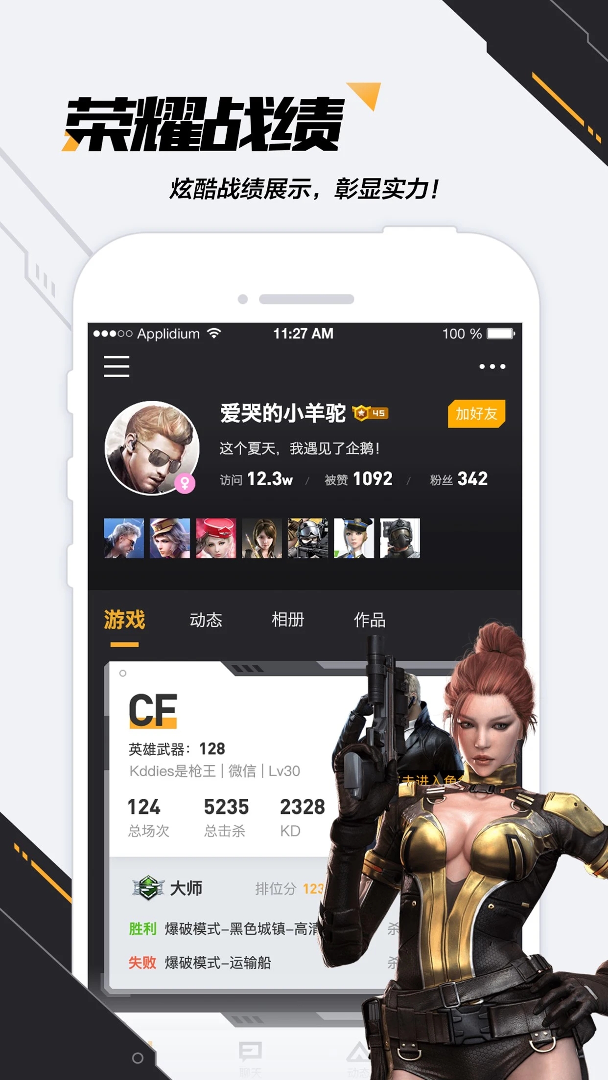 支持英雄联盟LOL穿越火线的玩家登录,随时随地查看游戏战况及数据!