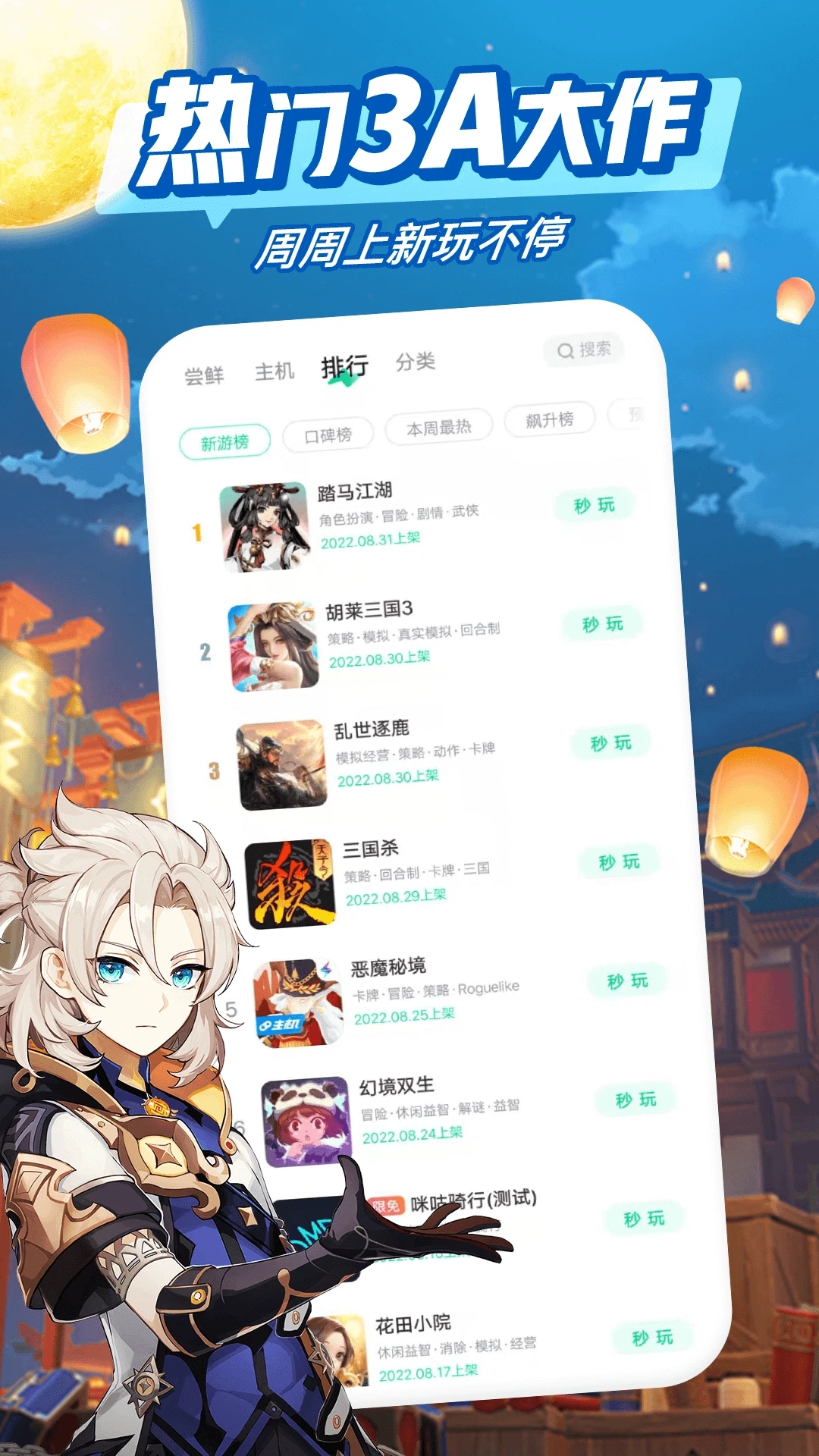 咪咕快游极速版下载安装后玩游戏,一款非常受欢迎的手机游戏软件,海量游戏资源免费畅玩体验,热门游戏在这里都能轻松享受,随时随地想玩就玩!无需安装即可直接使用,喜欢的朋友快来下载吧。