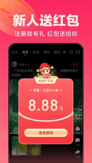 登录领现金,每看一条视频都有惊喜,奖励拿到手软;