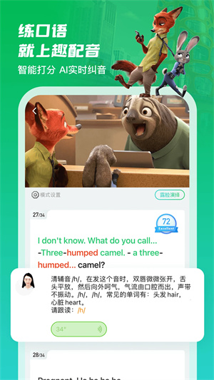 英语趣配音中学版是专为中小学生打造的英语口语app应用: