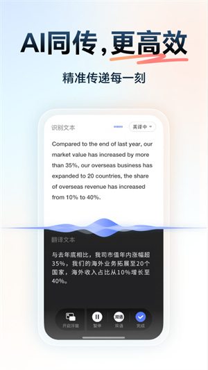 支持语音速查:强大的语音录入能力,即说即译无需手动输入便可快速获取优质翻译内容。