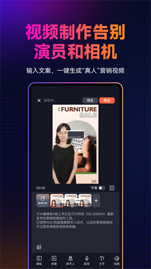 内置了丰富的文案库以及便捷的剪辑工具,能有效提升工作效率。