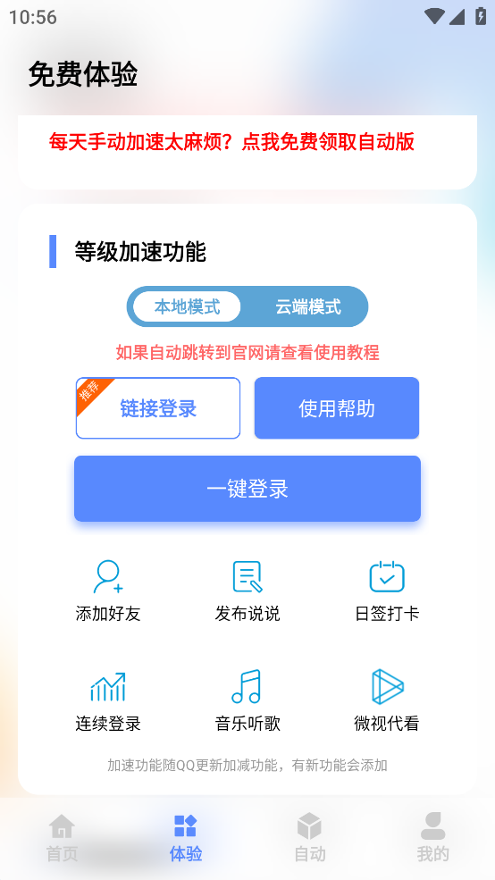 QQ等级加速器手机版是腾讯qq专为广大手机用户所打造的一款辅助软件,它主要就是帮助QQ玩家进行游戏加速和账号登录。它支持多种主流的安卓机型,、Windows10以下的手机型号以及最新的版本,并且还能够对用户的账号密码等信息进行了全面保护!