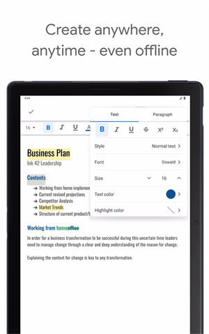 高效的工作体验:谷歌文档的界面采用清新自然的设计风格,色彩搭配舒适,让人在学习工作中感到愉悦舒适。