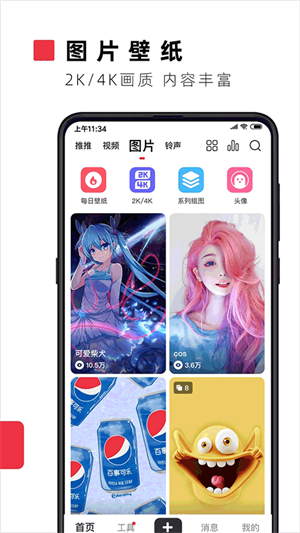 3、“壁纸”栏目中有海量的壁纸大全能够给用户带来更好的视觉盛宴;