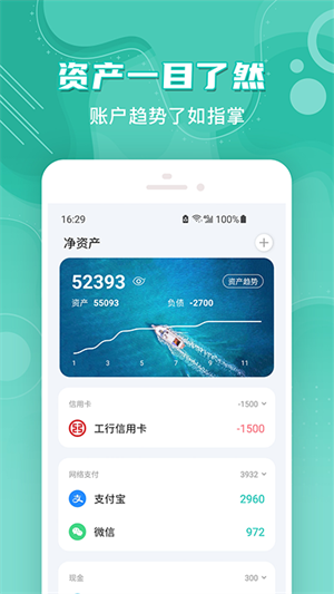 1、在薄荷记账app中我们能够实时了解自己的财务状况;