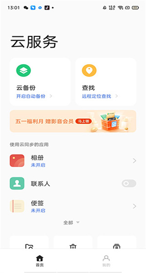 OPPO云服务提供免费的云存储空间更新提示(包括照片、文档、联系人、短信、通话记录等),确保重要资料不会丢失。