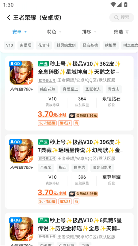 4.“租号营天”APP还提供了一些增值服务(如优惠折扣、红包奖励等等)增加用户间的互动乐趣,提升整体应用质量和效率。