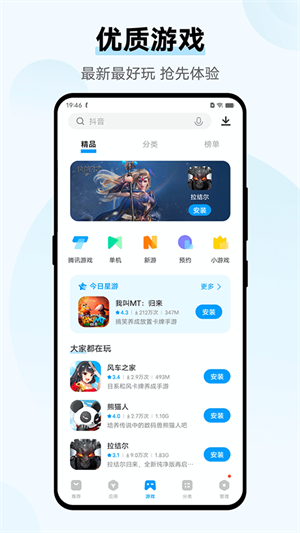 vIVO应用商店2024最新版本实名认证安全可靠,用户可以使用vivo应用商店app对自己手机中的软件进行管理、更新和卸载等操作。该软件提供了丰富的游戏资源库供用户选择并下载试玩,满足不同用户的娱乐需求。