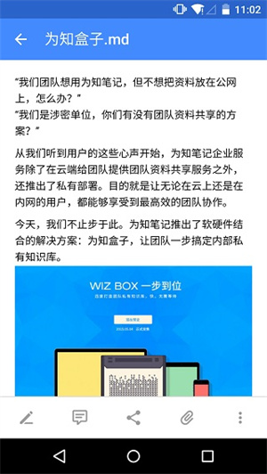 为知笔记是专注于个人与企业知识分享的平台,致力于打造简单、高效、安全、高效的办公协作解决方案。