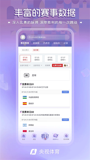 中央5体育直播app最新版是央视网推出的一款体育赛事视频软件,软件里为用户提供最全面的比赛数据和精彩的视频节目。用户可以在线观看各种精彩的视频内容哦,还有许多专业的解说为你带来精彩的观赛体验,喜欢的小伙伴不要错过!