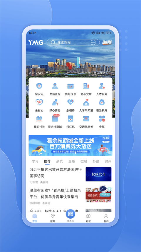 “看余泊区APP”由浙江省钱塘区的总工会主办,是集新闻+服务+商务于一体的综合性客户端。