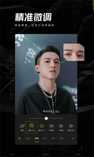 3、【精细调节】精准定位五官,瘦脸、大眼、祛痘、亮肤色。