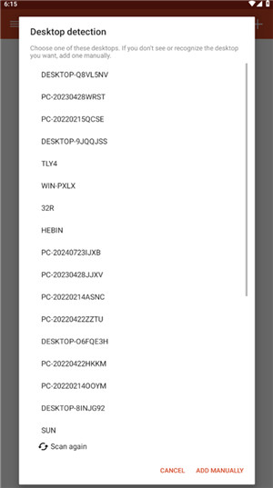 2、接着点击右下角“+”,选择你想要添加的远程电脑;
