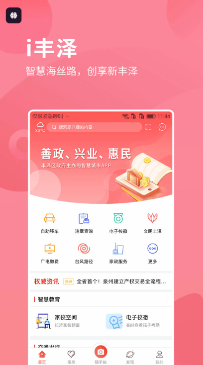 i丰泽企业体验城市服务软件app是一个专门针对本地的新闻资讯平台,该平台以便捷的生活和政务为主线,为本地的用户提供更加优质的服务。它不仅可以随时随地查看最新的本地资讯、***政策信息以及各种公共事务查询等功能内容,