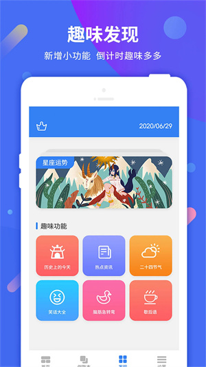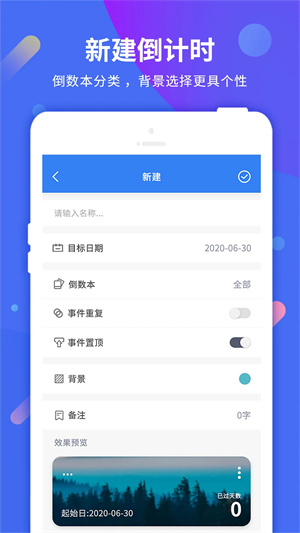 提供多样化的倒计时功能使用户能够根据自己的喜好选择适合自己的风格进行桌面展示;:不仅提供了多种实用的功能和服务让用户在手机上就能轻松完成日程管理操作并获得更好的效果;:采用直观友好的界面设计使得用户即使是没有经验的用户也能迅速上手并开始记录生活点滴。