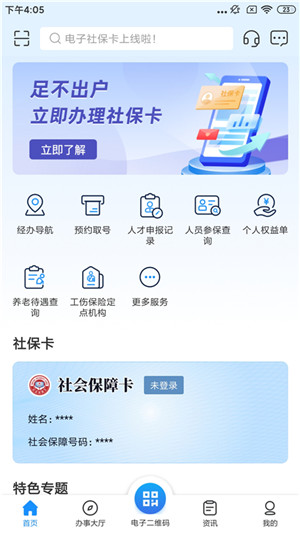 5、当成功登录后,返回到主界面可以看到已经绑定了电子社保卡了。