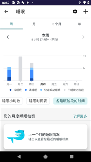 “个人数据”将为您展示在移动手机上的详细统计表中,包括睡眠,心率,血氧饱和度,体温变化和压力平衡。