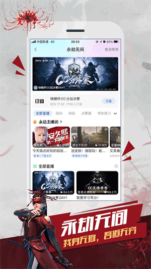 网易CC直播平台最新版是国内知名主播都在使用的网易游戏直播平台,这里有着最热门最专业的手游赛事视频资源和美女主播进行互动。网易cc直播平台拥有海量主播在线陪玩,大神带你一起开黑,还可以观看各种各样的游戏攻略等内容哦。