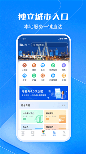 4、“海南政务服务网”APP将成为全省统一入口,汇聚全省政务服务平台的权威入口。