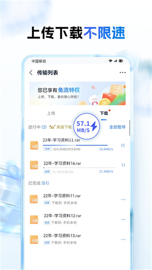 3、【无限速互传】上传下载不限速,上传无需等待,节约流量;