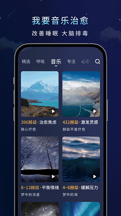 “妙唤醒”是基于脑电波技术研发的一款专注于减压放松、助眠和呼吸练习的APP。幻床拥有庞大的音乐曲库,涵盖了自然风光、轻柔钢琴旋律等多种类型,为失眠人群提供丰富多样的声音效果,帮助你更快入耳,享受宁静的工作生活,同时还具备个性化的闹钟设置功能,让你不再忘记重要事件,提升工作学习效率。此外,它还提供了丰富的自然声音资源,包括雨声、雷鸣鸟叫、森林动物等等,让每一次醒来都充满惊喜。如果你正在寻找一款能够有效的改善睡眠质量的好帮手。欢迎下载幻休,释放您的压力和情绪,享受前所未有的高品质助眠体验!幻毁免费版软件特色