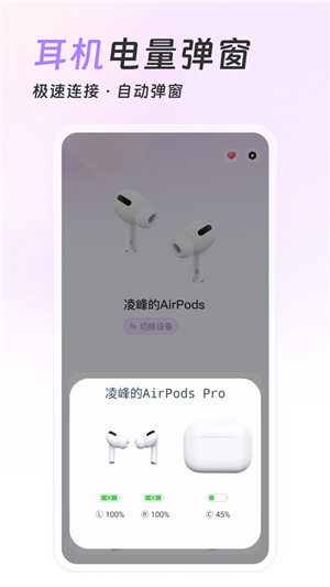 AirPods耳机是款方便好用的手机蓝牙耳机软件,通过开启用户们可以快速获取到耳机的最新动态和相关信息。我们在这里点击下载试用后就能在手机上进行各种操作使用。想要免费体验的朋友不妨速速下载吧!